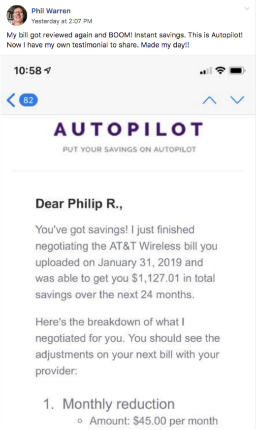 AutoPilot saved me a total of $1,068 on my internet and cell phone bills for 2 years!